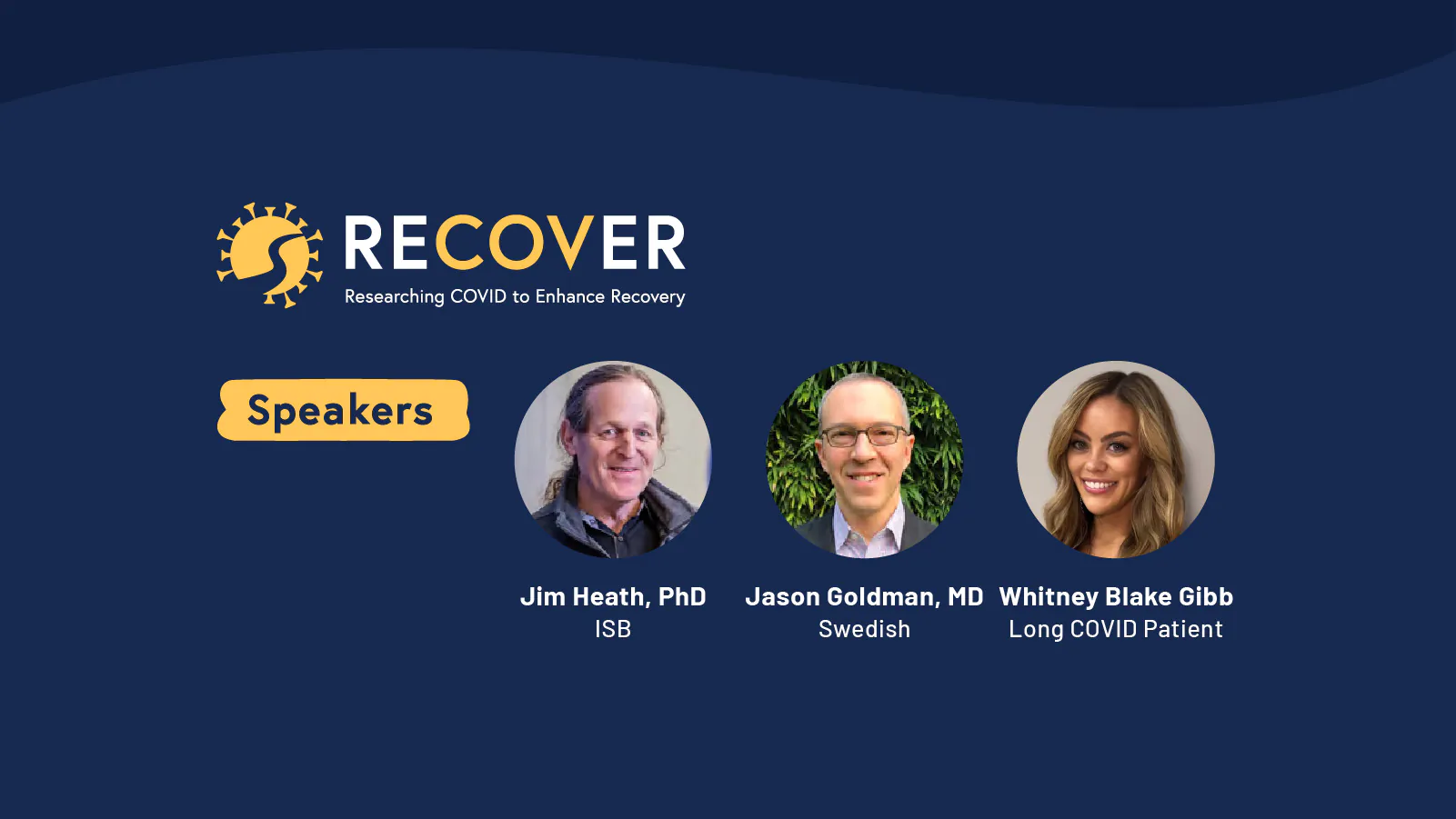 Drs. Jim Heath and Jason Goldman will share program updates on RECOVER research and clinical trial efforts, followed by Whitney Blake Gibb, a patient who will share her personal experience with long COVID. Following the presentations, audience members will have the opportunity to ask the panel questions during a live Q&A.